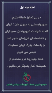 در پی تهاجم رژیم غاصب صهیونیستی به میهن عزیزمان “ایران”که به شهادت تعدادی از شهروندان، سرداران و دانشمندان عزیزمان منجر شد.این مصیبت را به ملت بزرگ ایران تسلیت عرض می کنیم.